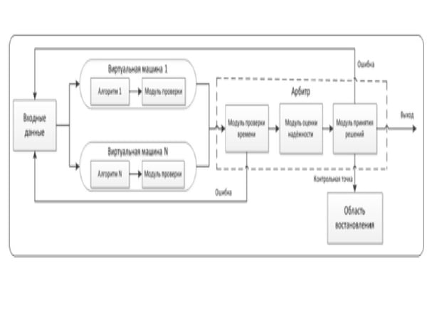После восстановления отказавшего процесса ему будут повторно в любом порядке отправлены все сообщения. Виртуальной машиной выполняется алгоритм приложения реального времени, после чего запускается модуль проверки, отвечающий за корректность работы виртуальной машины. Арбитр содержит три модуля: проверки времени, оценки надежности и принятия решений. В зависимости от типа приложения реального времени арбитр может быть расположен на стороне облака или пользователя, но, как правило, находится возле датчиков или механизмов управления (рис.2).