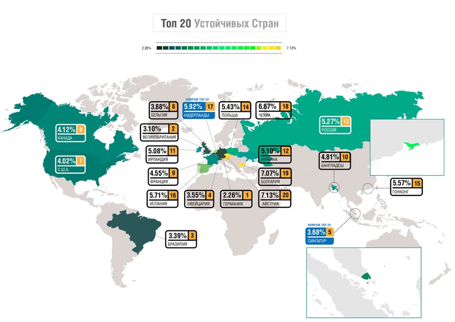 Исследование, проведенное компанией Qrator Labs, показывает, какой процент национального сегмента интернета перестанет работать в стране при отключении основного провайдера.