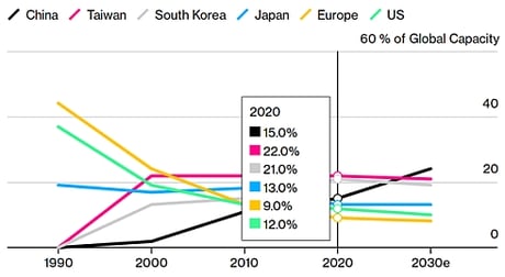 Пока же SIA приводит такие данные: из новейших фабрик, на которых будут изготавливаться микропроцессоры по самым передовым техпроцессам в ближайшее десятилетие, лишь 6% будут размещены в США, и около 40% в КНР — если, конечно, не будут предприняты самые решительные шаги по стимулированию привлечения этих производств на американскую землю. Кстати, изрядную долю намеченных к постройке в Китае фабрик никаким образом уже не удастся заманить в США: они будут возводиться в Поднебесной (с привлечением немалых правительственных субсидий, без сомнения) именно ради того, чтобы обеспечить той надёжный микропроцессорный суверенитет.