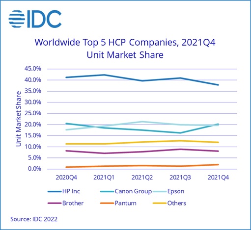 Компания IDC подвела итоги мирового рынка устройств хардкопи (hardcopy peripherals, HCP) за 4-й квартал 2021 г. (4Q21). Аналитики отмечают падение на 17.6% поставок в штуках до значения 22.3 млн штук …