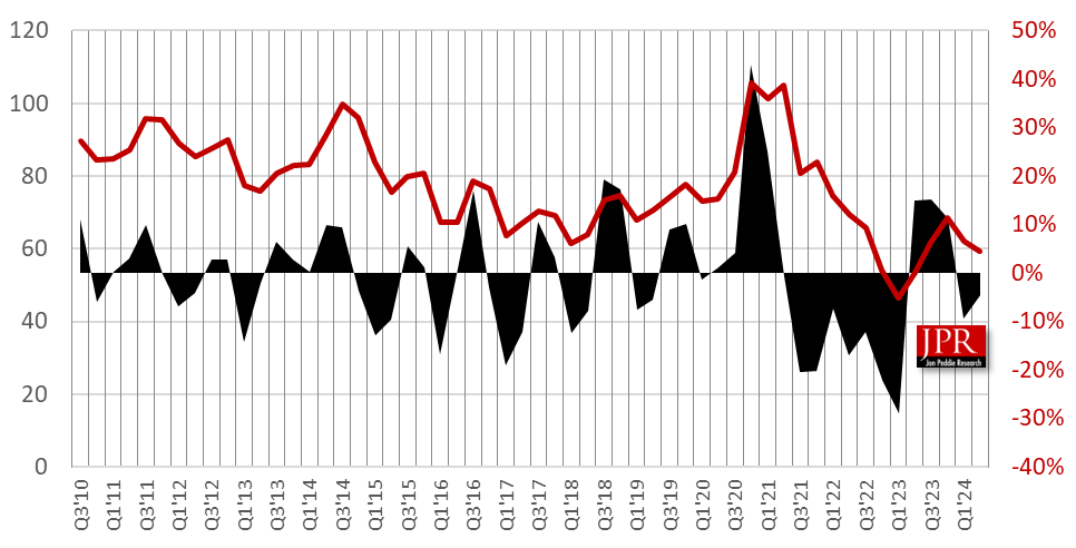 По оценке Jon Peddie Research, за II кв. текущего года в мире было отгружено на 5% центральных процессоров (для ПК, не серверных) меньше, чем по итогам предшествовавшего квартала, пишет ITBestsellers …
