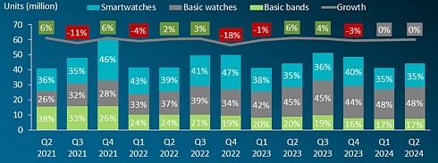 Глобальные поставки носимых на запястье гаджетов по итогам II кв. 2024 г., которые только-только подсчитали в Canalys, выросли год к году, но всего лишь на 0,2%, до 44,3 млн устройств, …