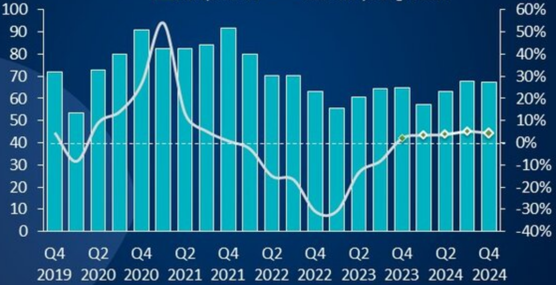 С I кв. 2022 г. по III кв. 2023-го глобальные поставки смартфонов демонстрировали уверенно отрицательную динамику, порой с двузначными значениями сокращения отгрузок год к году. Тенденция эта была преодолена в …