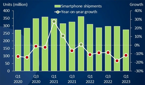 По итогам I кв. 2023 г. в Canalys зафиксировали снижение отгрузок смартфонов в глобальный канал на 12% год к году. Величина спада конечно немалая, однако в последнем квартале 2022 г. она достигала почти 20%, да и в целом за прошлый год мировые поставки смартфонов просели на 12% от уровня 2021-го. На этом основании аналитики делают предварительный вывод о возможной стабилизации смартфонного рынка. Об этом передает ITBestsellers.
