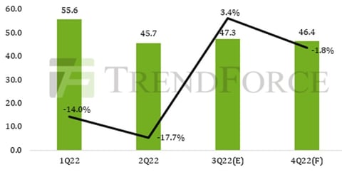 По данным TrendForce во II кв. текущего года в мире было отгружено 45,74 млн ноутбуков — на 17,7% меньше, чем кварталом ранее, и на 24,5% меньше, чем за второй квартал 2021-го.