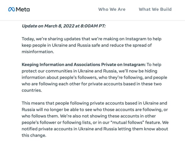 Ранее директор «Лиги безопасного интернета», член Общественной палаты (ОП) России Екатерина Мизулина предложила заблокировать на территории страны социальную сеть Instagram. Мизулина отметила, что недостоверная информация и призывы к незаконным акциям активно распространялись в Instagram. Поэтому она призвала замедлить соцсеть в России на время военной операции на Украине.