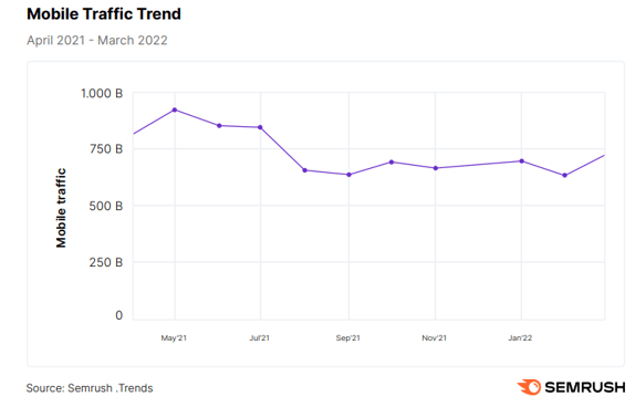 По данным отчёта The State of Mobile 2022: Exploring the Future of Mobile, который опубликовала онлайн-платформа для интернет-маркетологов Semrush, возвращение пользователей в смартфоны и планшеты после пандемии COVID-19 происходит не так стремительно, как предполагалось изначально. Аналитики онлайн-платформы выяснили, что в марте 2022 года пользователей мобильных устройств стало на 30% меньше, чем в мае 2021 года.
