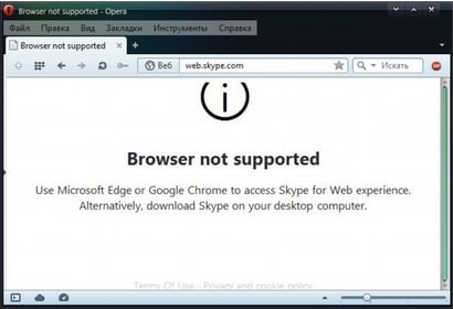 Из списка поддерживаемых онлайн-версией Skype браузеров, по данным портала Venture Beat, в одночасье исчезли Mozilla Firefox, Apple Safari и Opera. Microsoft оставила лишь поддержку своего нового обозревателя Edge и браузеров на основе движка Chromium, в число которых, стоит отметить, входит и новая Opera. По каким причинам этот обозреватель более не поддерживается, Microsoft не сообщает. Представитель корпорации отметил, что сервис звонков в разных браузерах реализован по-разному. К слову, в одном из ближайших обновлений Windows 10 обозреватель Edge тоже перейдет на Chromium вместо фирменного движка Edge HTML.