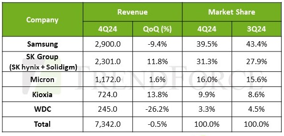 И в первой четверти 2025-го ситуация навряд ли изменится: хотя спрос на 4- и 8-Тбайт полупроводниковые накопители для серверов (и классических, и предназначенных для ИИ-нагрузок) продолжит оставаться высоким, потребительский сегмент явно не продемонстрирует лучших результатов, чем в IV кв. 2024-го.