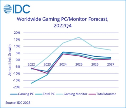 Компания IDC отмечает падение глобального рынка игровых ПК и игровых мониторов в 2022 г. после трёх лет его активного роста.
