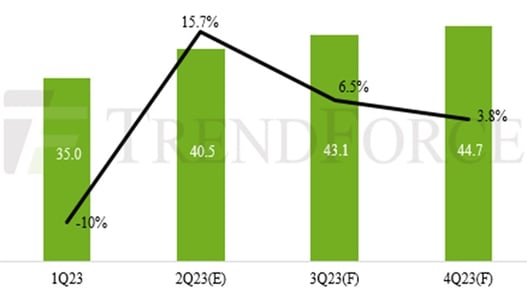 Однако в апреле-июне текущего года ситуация, судя по всему, несколько изменилась, пишет ITBestsellers. Аналитики TrendForce сообщают (пока лишь на правах предварительной оценки, ещё не подведя точных итогов), что глобально за II кв. 2023 г. было отгружено 40,45 млн ноутбуков — на 15,7% больше, чем за предыдущий квартал. Правда, в годовом выражении это всё равно спад — на 11,6% к уровню II кв. 2022-го. Далее аналитики ожидают продолжения квартального роста, пусть и с более сдержанным темпом, — около 6,5% для III кв. текущего года.