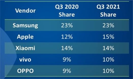Что же до расстановки сил в лидирующей пятёрке смартфонных вендоров, то здесь произошли не большие, но вполне предсказуемые изменения. Xiaomi — с учётом — уступила завоёванное во II кв. «серебро» Apple. При этом рыночные доли Samsung, Vivo и Oppo остались практически прежними.