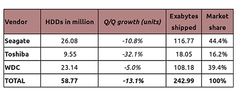 Поставки HDD неудержимо снижаются