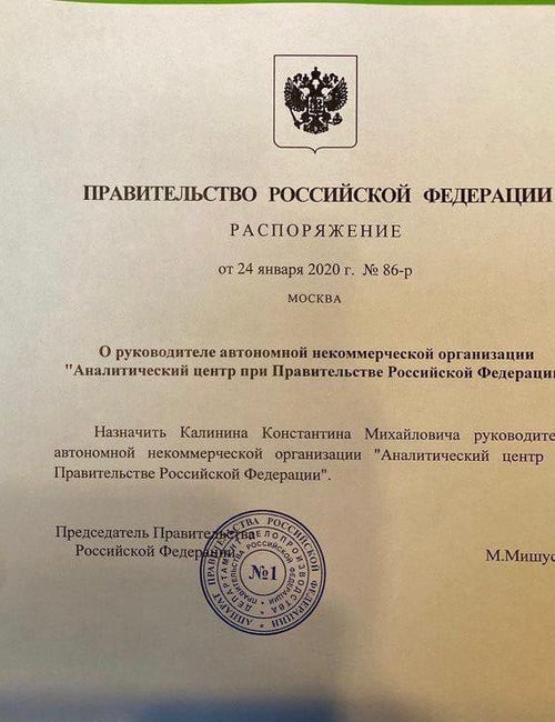 Премьер-министр Михаил Мишустин подписал распоряжение о назначении нового главы Аналитического центра при Правительстве (АЦ) Константина Калинина. Копия документа имеется в распоряжении CNews. Пресс-служба АЦ подтвердила данное назначение.