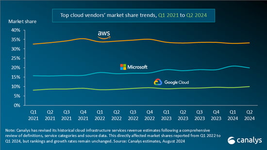 За II кв. 2024 г. расходы на услуги, оказываемые облачной инфраструктурой (принадлежащей, в основном, гиперскейлерам — провайдерам такого рода сервисов планетарного масштаба), достигли в сумме по миру, согласно данным Canalys, 78,2 млрд долл. США, что на 19% превзошло уровень того же периода годом ранее. Увеличение выручки трёх ведущих поставщиков облачных услуг — AWS, Microsoft Azure и Google Cloud — в сумме оказалось ещё внушительнее, +24% год к году, причём на них в совокупности пришлось 63% общемировых расходов заказчиков. В немалой степени генераторами дохода для гиперскейлеров выступают доступные через облако ИИ-модели их собственной разработки (либо созданные аффилированными с ними компаниями), востребованность которых среди клиентов сегодня чрезвычайно велика, — это Gemini 1.5 у Google Cloud, GPT-4o mini у Azure, а также Bedrock, Claude 3.5 и прочие у AWS.