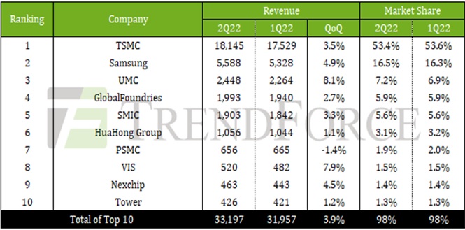 Производство по самому передовому 3-нм процессу, о коммерческом запуске которого заявила пока лишь Samsung, во II кв. только стартовало, и в заметных объёмах изготовленные по данной технологии чипы появятся в статистике лишь ближе к концу года. Зато прекрасные результаты демонстрирует зрелый 28/22-нм техпроцесс. В частности, для UMC, в портфеле которой литографирование кремниевых пластин по технологическим нормам 28/22 нм занимает 22% по доле обеспечиваемого дохода, прирост выручки по этому направлению квартал к кварталу достиг 8,1%.