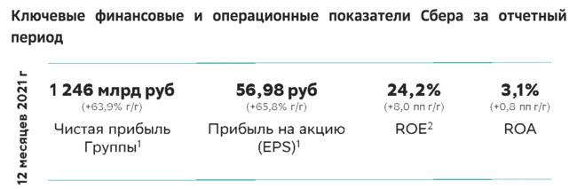Рентабельность капитала выросла на восемь процентных пунктов по сравнению с 2020 годом и составила 24,2%. Количество активных клиентов-физических лиц достигло 103,8 млн человек. За 2021 год розничный кредитный портфель вырос на 25,9% до 11,5 трлн руб.