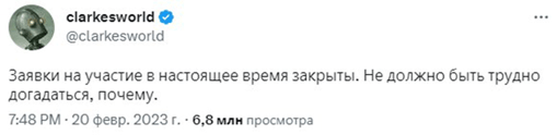 Популярное в США научно-фантастическое издание Clarkesworld Magazine объявило 20 февраля о приостановке приёма материалов после того, как редакторов завалили рассказами, созданными искусственным интеллектом. Clarkesworld публикуется в Интернете с 2006 года, поясняет Securitylab.