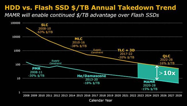 С помощью технологии MAMR в Western Digital надеются создать жесткие диски емкостью до 106 ТБ ориентировочно к 2032 г. Кроме того, в компании полагают, что именно технология MAMR позволит традиционным жестким дискам сохранить преимущество по отношению стоимости на гигабайт данных по сравнению с твердотельными накопителями вплоть до 2030-х годов.