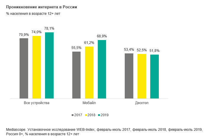 По данным Mediascope, в феврале-ноябре 2020 года интернетом пользовались 78,1% населения России старше 12 лет хотя бы раз в месяц. Это в среднем около 95,6 млн человек, подсчитали эксперты измерителя …