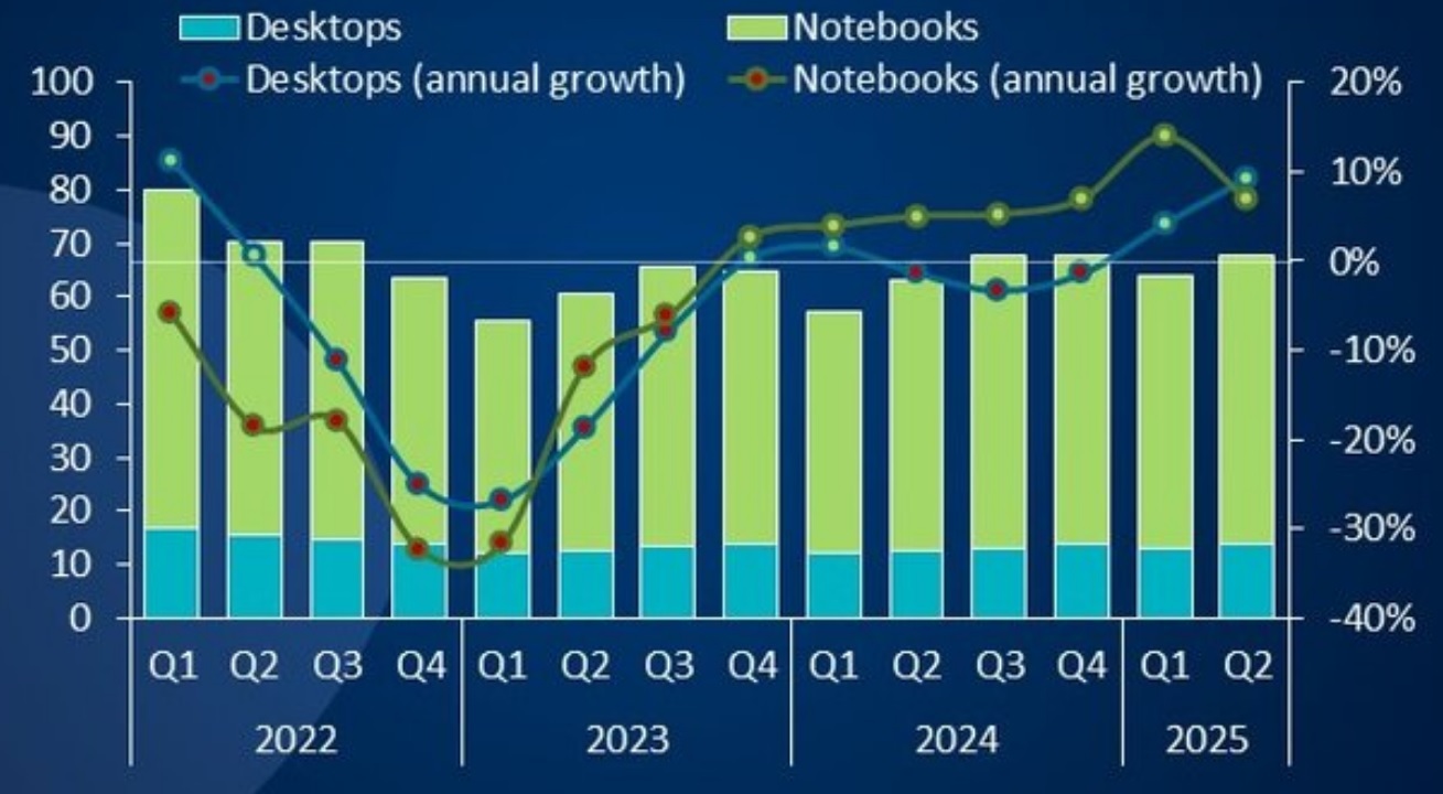 В последние несколько кварталов, начиная с IV кв. 2024-го, мировые поставки настольных ПК демонстрируют уверенный рост — невзирая даже на то, что отгрузки ноутбуков (а тех в количественном исчислении реализуется …
