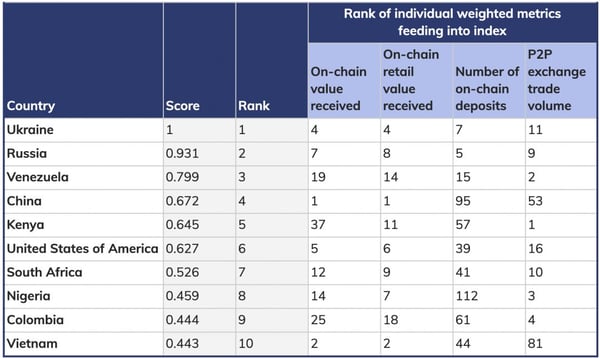 Украина занимает первое место в рейтинге стран по принятию криптовалют